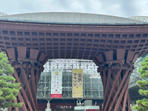 兼六園口(東口)を出てまず目に飛び込んでくるのが、巨大な「鼓門」です。