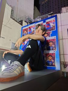 つい先日、テレビでサッカー日本代表の久保建英の巨大オブジェみたいなのが出来て、本人と一緒に映っていたのを見ました。
