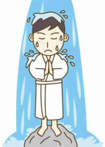 まずは準備運動から始まり、慣らしで滝の水を体に当て、一度外へ出て正拳突きで気合注入。
