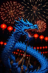 今年のタイは喪中ではありますが、花火や龍舞などイベントごとは行われています。